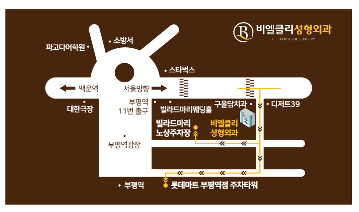 1. 빌라드마리 웨딩홀 지상주차장 : 1시간 무료주차, 수술당일은 무료주차, 토요일은 주차불가