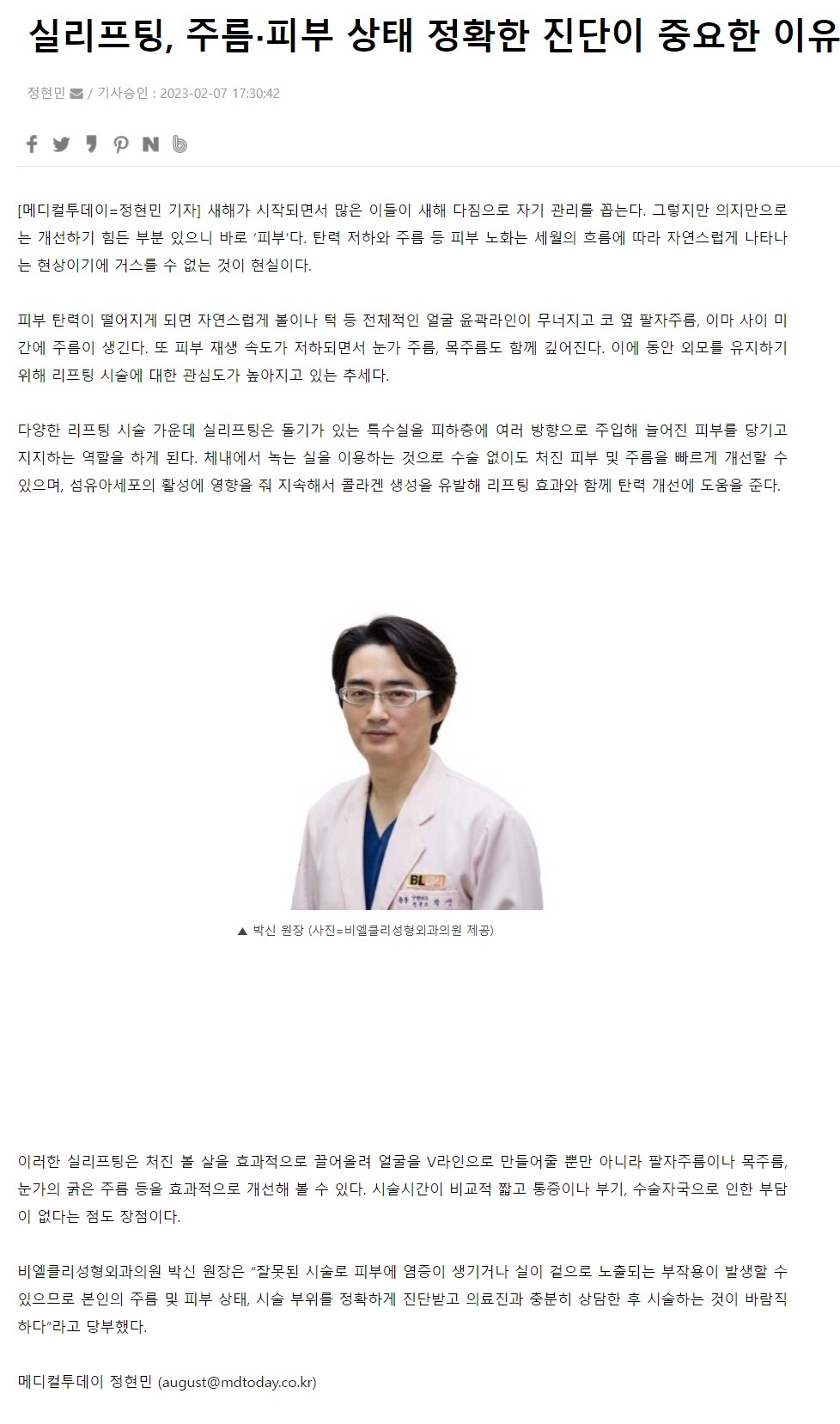 [언론보도] 실리프팅, 주름‧피부 상태 정확한 진단이 중요한 이유