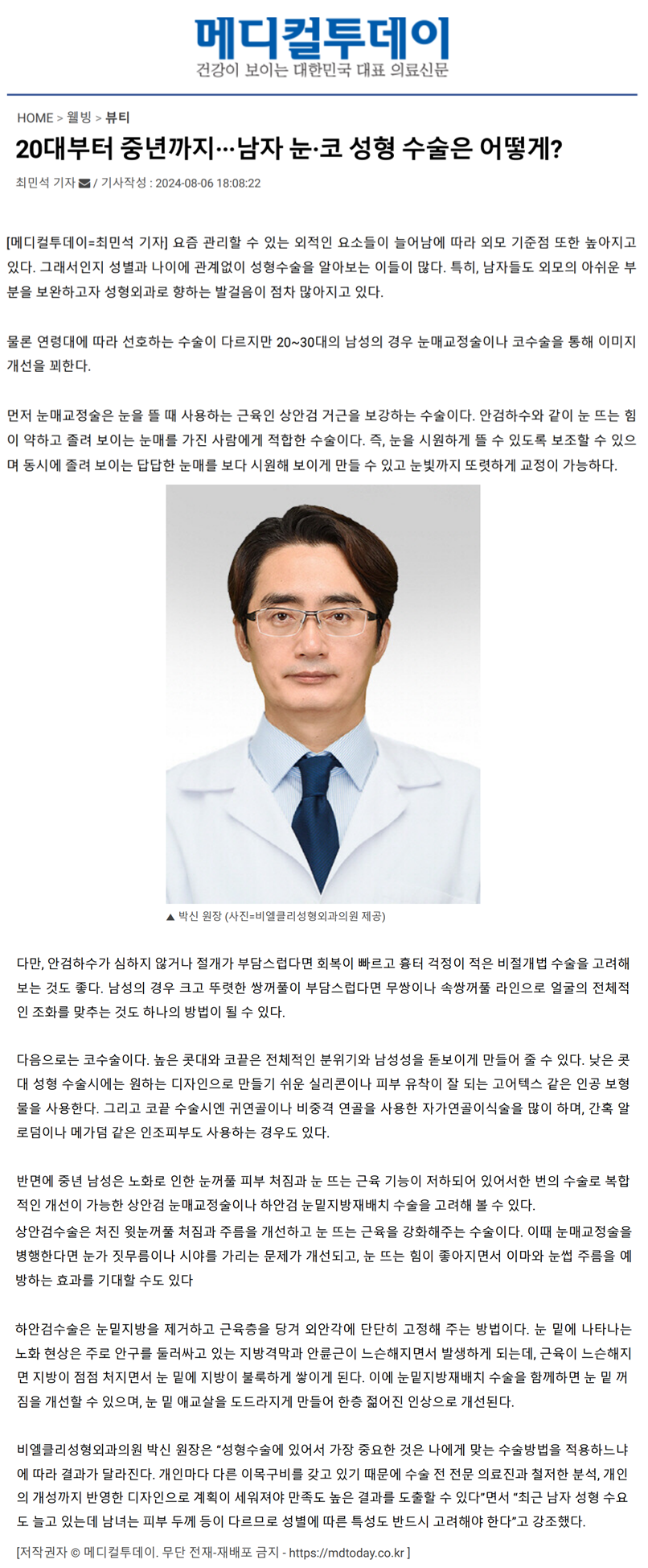 ☆커뮤니티 > 보도자료 > [언론보도] 20대부터 중년까지···남자 눈·코 성형 수술은 어떻게?