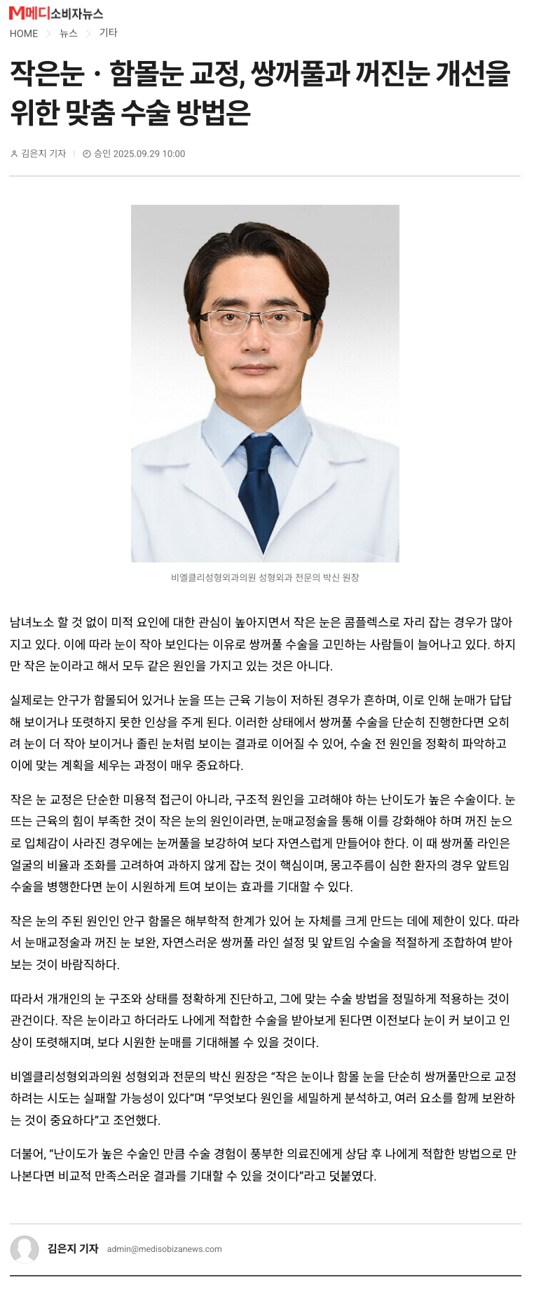 [언론보도] 작은눈ㆍ함몰눈 교정, 쌍꺼풀과 꺼진눈 개선을 위한 맞춤 수술 방법은