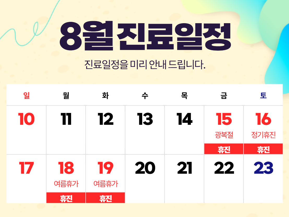 2025년 8월 진료일정 안내 드립니다.